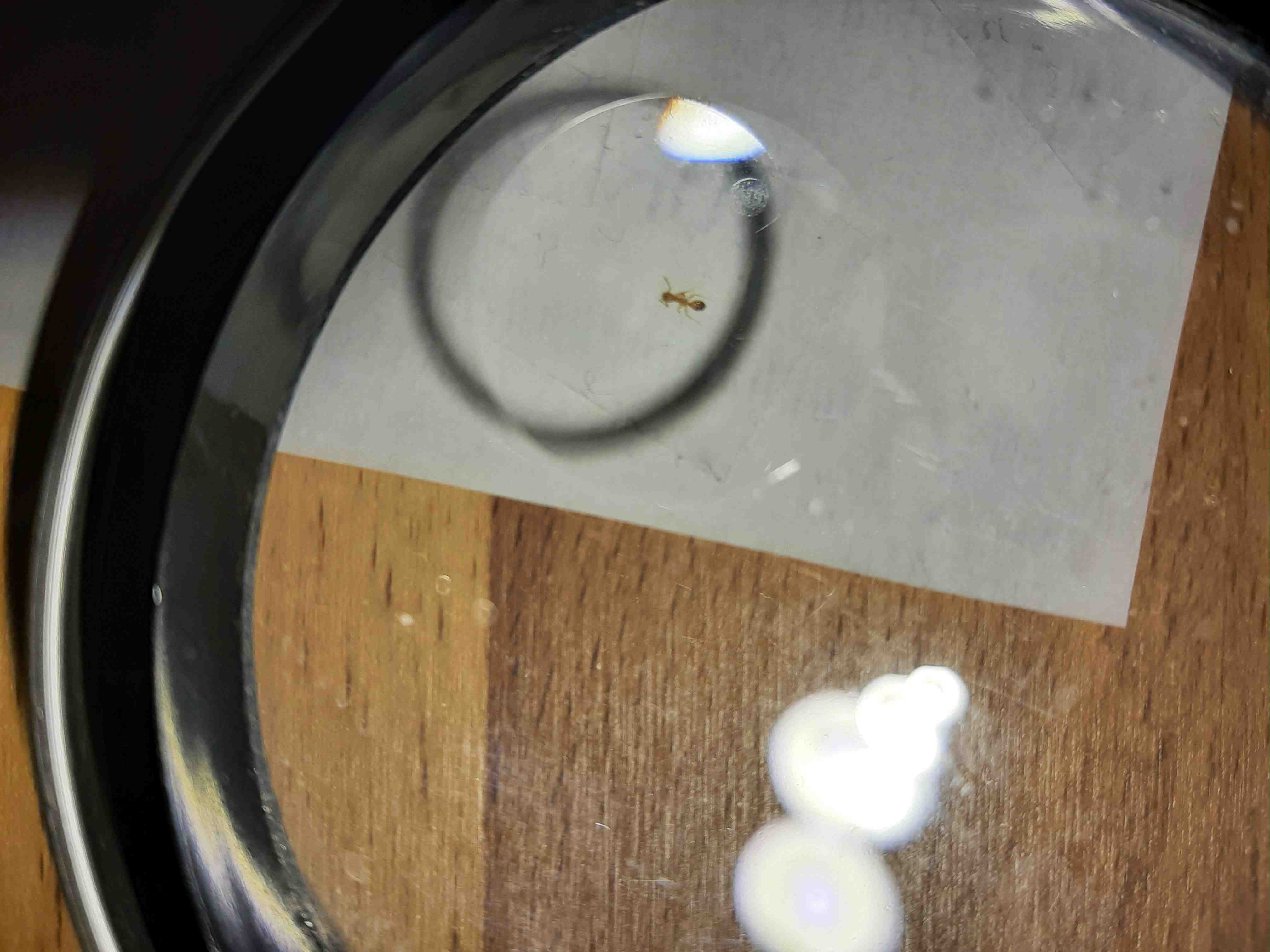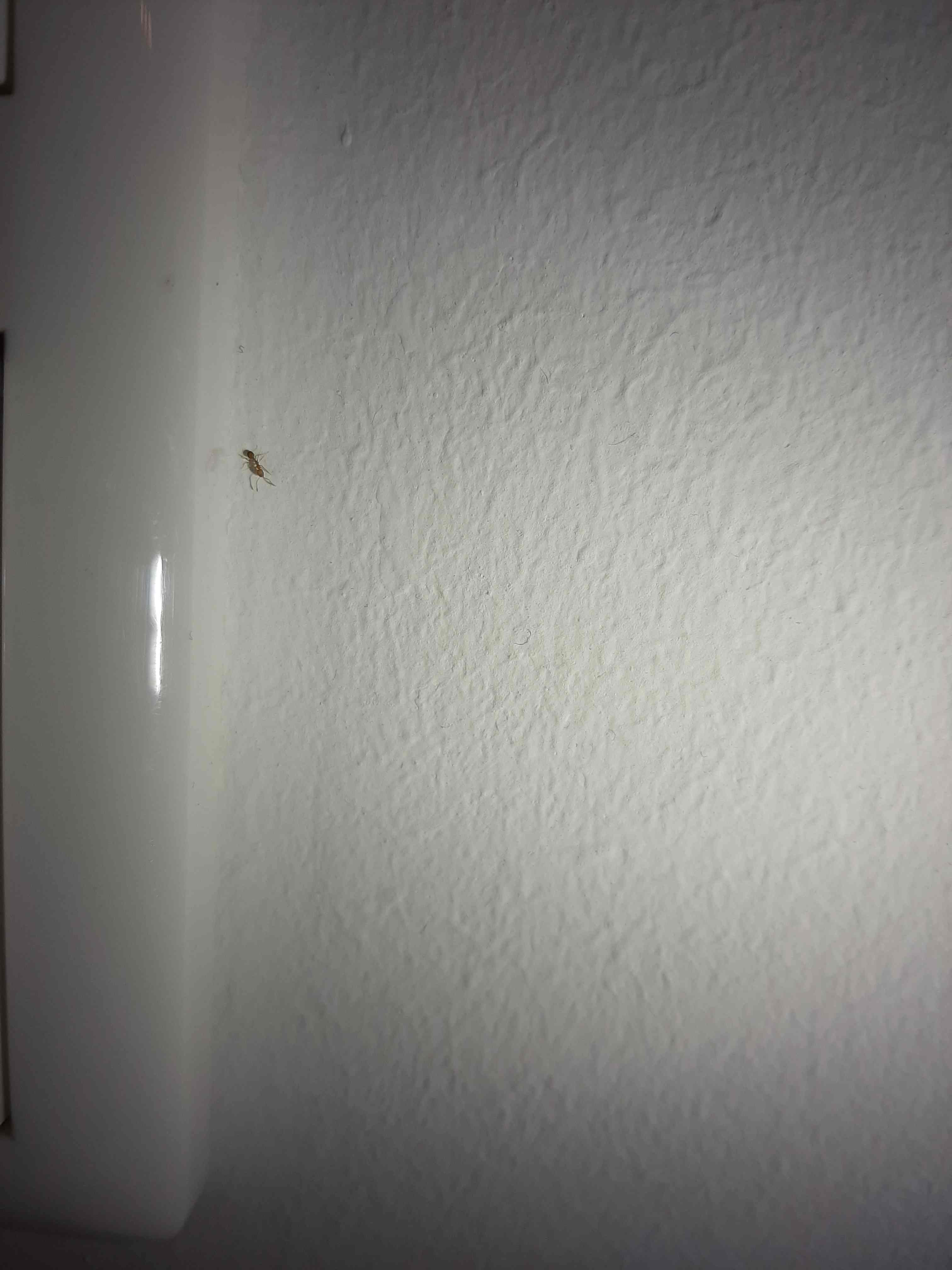 Bisher habe ich mir da auch keine allzu großen Gedanken gemacht, sondern einfach die Augen offen gehalten und zwar immer mal den Verdacht gehabt, weil ich gelegentlich Tierchen gesehen habe, das waren aber lediglich Staubläuse, die ja wohl in Neubauten relativ normal sind zu Beginn. Bei den Häusern hier handelt es sich um Häuser in Passivhausbauweise, die ja eigentlich – gerade jetzt im Winter – eher trocken sind, was Pharaoameisen wohl weniger mögen, wie ich gelesen habe. Andererseits handelt es sich ja um eine ziemlich widerspenstige Art. Das erste Exemplar habe ich am 20.01.21 im Bad entdeckt, kurz darauf noch ein weiteres Tier. Ein oder zwei Exemplare im Flur vor dem Bad vor der Waschmaschine und irgendwann dann auch welche in der Küche. Dort habe ich bisher die meisten gesehen und mittlerweile habe ich auch ein paar Wege ausmachen können. Die Tiere krochen am Kühlschrank entlang, wo da aber genau ihr Ziel liegt, weiß ich noch nicht. Ansonsten verschwinden sie eben auf zwei Wegen irgendwie unten hinter der Küchenzeile.