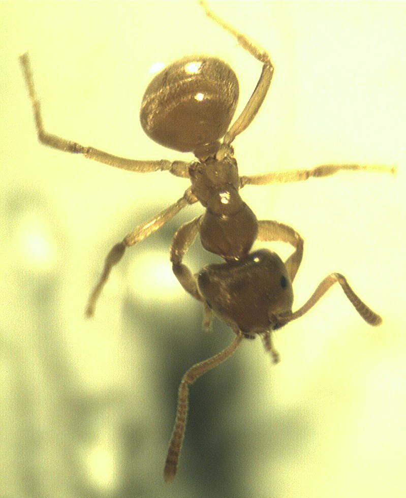 ...Solenopsis fugax und Monomorium pharaonis gehören zu den Knotenameisen. Sie haben zwischen Thorax und dem dicken Teil des Hinterleibs zwei rundliche Stielchenglieder, nicht nur eine flache, aufrechte Schuppe.