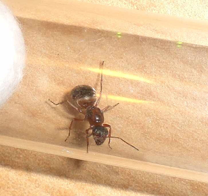 die Flügel ab, allerdings meist später als begattete. Aber da wird es wohl große intra- und interspezifische Variation geben. Man kann die Koloniegründung des Serviformica-Weibchens beschleunigen, indem man ihm einige Puppen oder frisch geschlüpfte Arbeiterinnen der gleichen oder einer nah verwandten Art gibt, in diesem Fall rufibarbis, lusatica oder cunicularia.