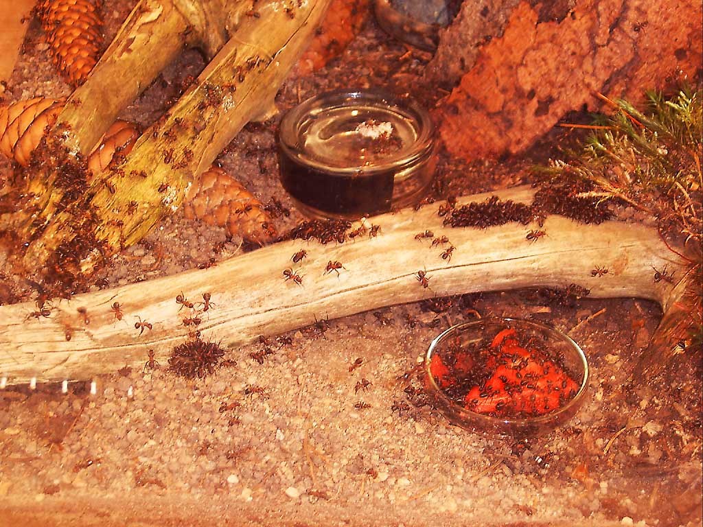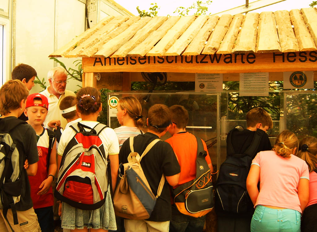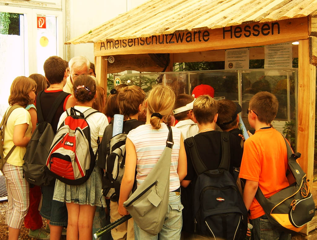 Das Zelt "Der Natur auf der Spur" lockte auch auf dem diesjährigen Hessentag in Weilburg wieder unzählige Besucher an. Die ASW Hessen war mit einem großen Formikarium in dem äußerst gelungen gestalteten Naturerlebnisraum vertreten. Die Nestarena ermöglichte einen Einblick in die Bautätigkeit der Waldameisen und auch in den Längsschnitt des Nestes. Im Futterteil auf der rechten Seite konnte die Aufnahme flüssiger Nahrung und auch die Erbeutung von Raupen beobachtet werden. Auf der rückwärtigen Wand wurde über die Waldameisen allgemein und über die Gründe für ihre Unterschutzstellung sowie über den Landesverband Hessen der DASW informiert. Zahlreiche Schulklassen wurden von den anwesenden ASW-Mitgliedern umfassend unterwiesen.