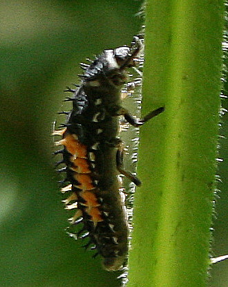 Im eigenen Garten, Nähe Darmstadt, hatte ich im Mai/Juni eine Massenvermehrung von H. axyridis. Man hatte praktisch immer 5-6 Larven oder Puppen im Blickfeld, wenn man auf eine Pflanze schaute.