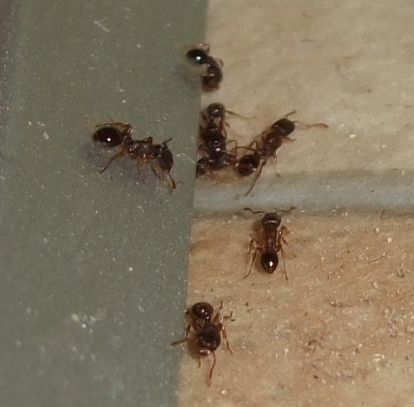 Der Aktionsradios der neuen Ameisenart ist in der Tat enorm. Sie sind fast in allen Zimmern des Hauses und kriechen auch Kästen etc. hoch. Was mich allerdings wundert - sie gehen offenbar nicht an Nahrung. Sie schwärmen zwar aus und krabbeln überall herum (ich schätze mal immer so 20-30, wenn man sie wegsaugt, sind sie in 15 Minuten wieder präsent), aber sie scheinen nichts zu fressen sondern laufen eher planlos in der Gegend herum. Sowohl die "fertigen" Köderdosen als auch meine Köder werden links liegen gelassen.