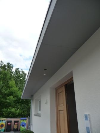 Um das Hausdach herum ist ein Gesims vorhanden, dass mit Betonfaserplatten verkleidet ist.