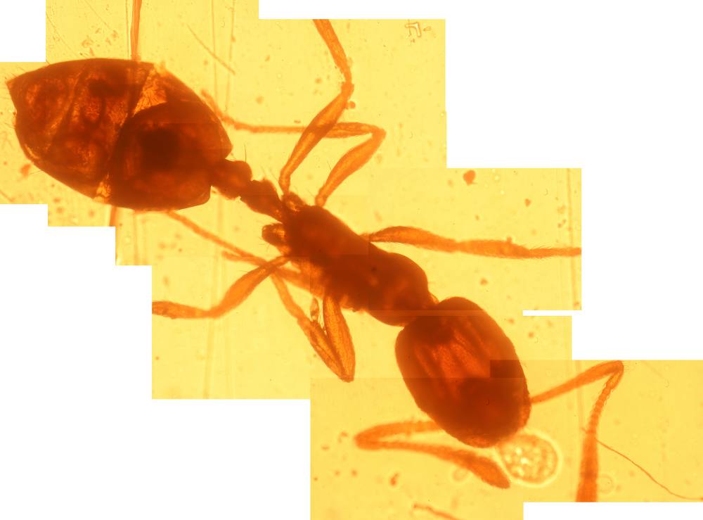 Da ich beruflich mit Mikroskopen arbeite(aber biologisch ungebildet bin), habe ich mal ein paar mitgenommen und Bilder gemacht (musste ich zusammenstückeln, da die Vergrößerung zu groß war). Es wäre total super, wenn mir jemand bei der Bestimmung helfen könnte, damit ich weiß, was ich am besten gegen die Ameisen machen kann.