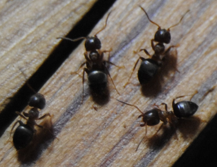 seit ca. einer Woche herrscht rege Aktivität in der Kolonie, die sich offensichtlich bereits vor längerer Zeit in Hauswand und/oder den Zwischenböden unseres Altbaus eingenistet hat. Die Tiere kommen aus Spalten im Fußboden sowie aus Spalten in der Wand. Das öffnen der Fenster, um die vor allem in den Morgenstunden recht zahlreichen geflügelten Tiere loszuwerden, sowie "Bannkreise" aus Zimt um die Arbeiterinnen in ihrem Aktionsradius einzuschränken haben als Hilfsmaßnahmen bisher einigermaßen funktioniert. Allerdings möchte ich nun doch gerne Wissen um welche Ameisenart es sich hier eigentlich handelt, dazu die angehängten Bilder. Bisher schreckte ich davor zurück die Ameisen zu bekämpfen, die wohnen hier schließlich schon länger als ich und Genozit liegt mir nicht so...