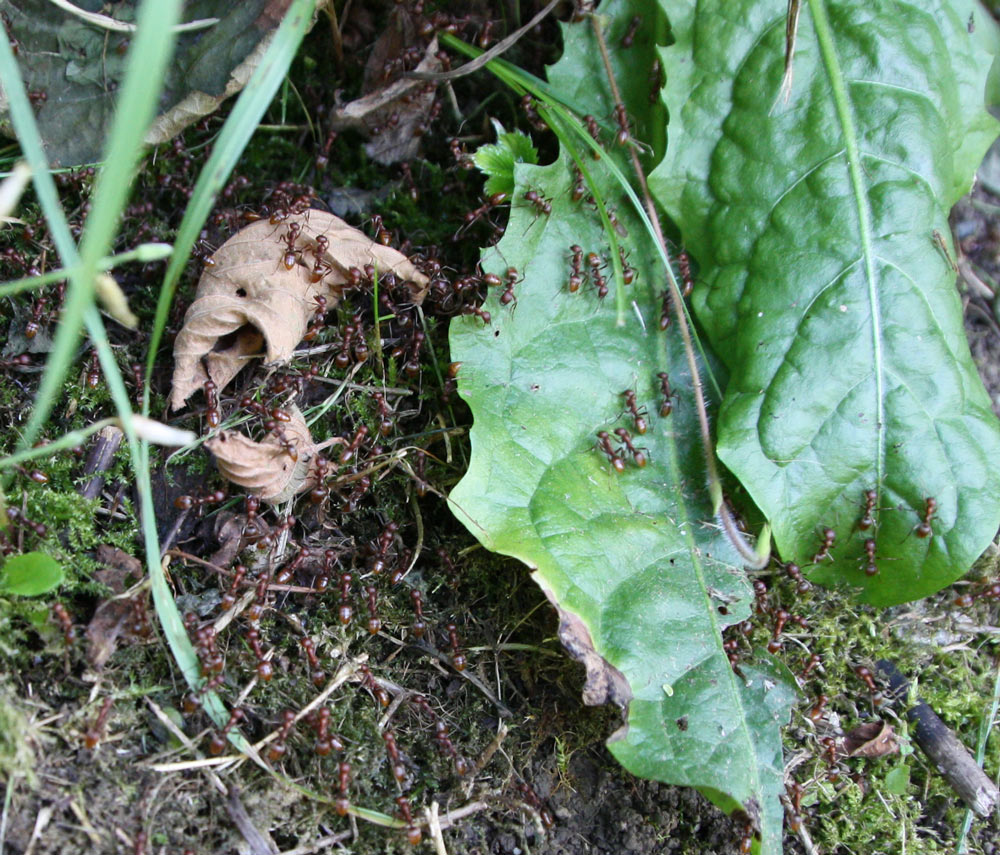 wir sind eben gerade von einer Wanderung zurück und siehe da, die Kolonie hat just in dem Moment wo wir angekommen sind einen weiteren Raubzug gestartet. Wir haben ca. 20 Minuten lang das zielstrebige Treiben der Ameisen verfolgt bis zum feindlichen Nest. Echt faszinierend wie das alles funktioniert hat. Ich werde später noch einige Fotos online stellen. Interessant war die Wegstrecke,... der Raubzug ging ca. über 50-75 Meter quer über das Grundstück meines Vaters. Das eigentliche Zielnest war dann in einem Blumenkübel direkt an der Hausveranda. Einige hunderte Arbeiterinnen der Armee sind in einem großen Wasserkübel zum Auffangen des REgenwassers Baden gegangen. Sie Bildeten dann eine kleine Kette (ähnlich wie bei den tropischen Treiberameisen). Alles in allem ein wirklich sehenswertes Schauspiel.