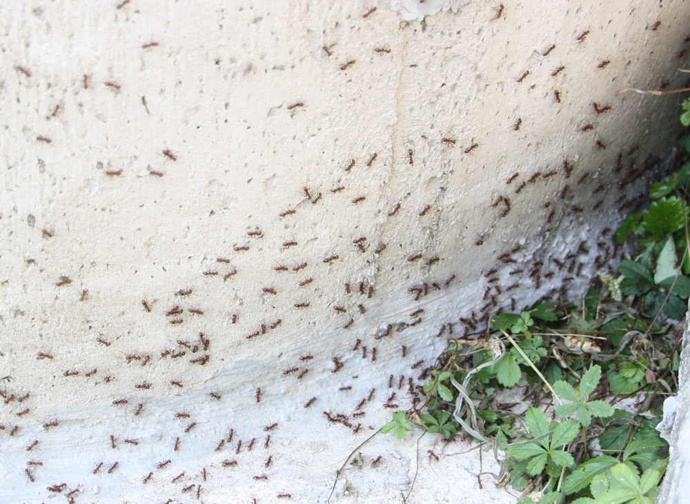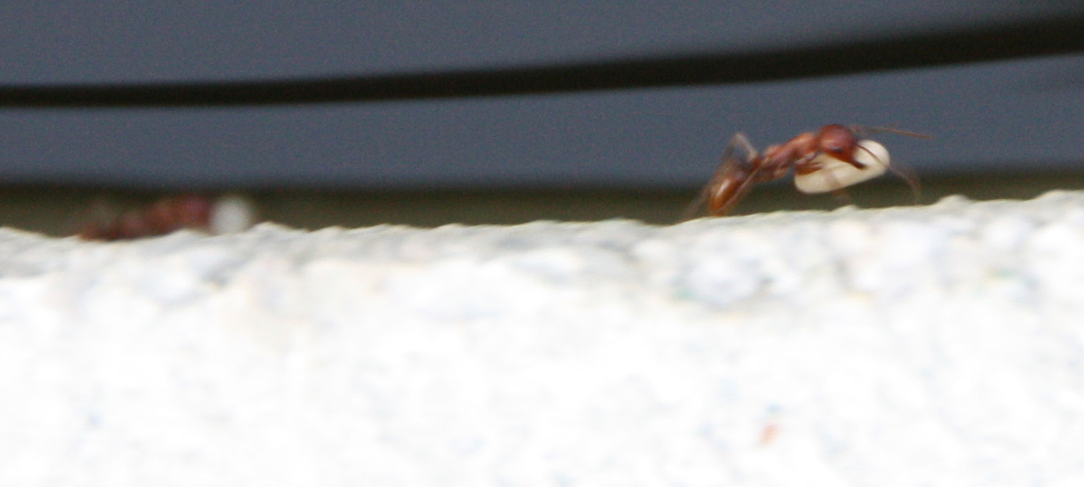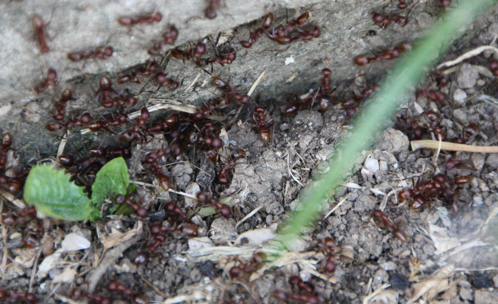 Zur Info: nach etwas einer halben Stunde waren keine der roten Ameisen mehr zu sehen und nur noch die schwarzen.