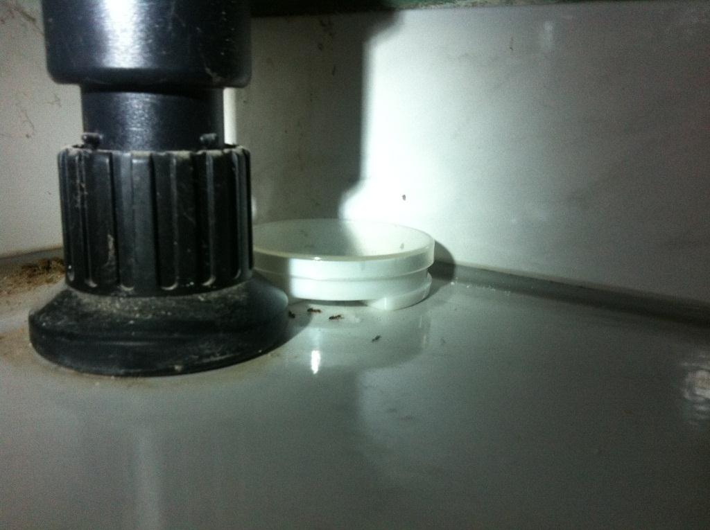 heimwerker77 hat geschrieben:Hallo, gestern Abend hab ich die zwei Ausgänge wieder vom Zimt und Kreide in der Küche befreit, allerdings kommen bis heute aus diesen Ausgängen keine Ameisen mehr raus, ich hatte gestern noch Celaflor und Köderdosen gekauft und den bewehrten Leberwurst/Celeflor Mix angemischt und per Köder an den zwei bis dahin bekannt Ausgängen gestellt. Dann wie aus dem nichts erschien eine einzige Arbeitsameise, aus welchem Ausgang konnten wir leider nicht beobachten, Sie irrte durch die gesamte Küche und zum Teil auf dem Flur in recht merkwürdigen Laufrichtungen, dann verschwand Sie unterhalb der Küche in einen scheinbar neuen dritten Ein-Ausgang durch einen Fugenspalt in einer Sockelfliese, ich stellte darauf hin einen der Köder direkt vor diese dritte Öffnung in der Hoffnung das diese Ameise allen anderen wieder zum Ausgang aktiviert. Heute morgen dann, beide Köder an den alten Ausgängen = keine Ameise am Köder oder Umgebung, am neuen dritten Ausgang von gestern Abend = Erfolg, mehrere Ameisen nahmen den Köder an, anbei ein Foto was unter der Küche recht schlecht zu erstellen war...