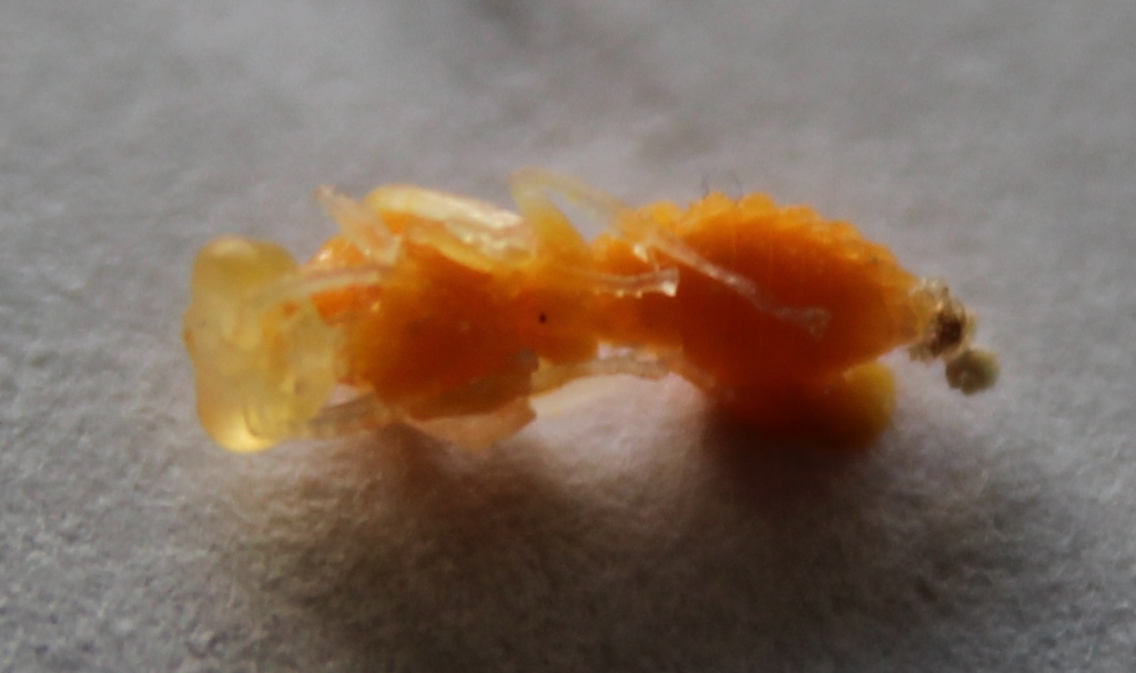 Hallo liebe Ameisenfreunde! Vor 3 Tagen habe ich Fressgeräusche aus unserer Kniestöckdämmung vernommen. Wir haben neu gebaut und daher ist die Dämmung (innen) noch frei zugänglich. Es handelt sich um 50cm breite Styroporklötze, die zwischen den Dachsparren klemmen. Als ich den Klotz, aus dem die Geräusche kamen, herausgenommen habe, staunte ich nicht schlecht. Von hinten waren mehrere Löcher zu sehen und Styropormehl am Boden. In dem Klotz waren Ameisen zu Gange. Ich habe den Klotz dann vor dem Haus genauer untersucht. Entdeckt habe ich 3 Ameisen mit Flügeln, sowie einige Blattläuse. Eier habe ich keine gefunden. Nun meine Frage: Wenn ich keine weiteren Ameisen finde, kann ich dann davon ausgehen, dass ich mit dem Nest und den 3 Einwohnern alle erwischt habe? Wenn die Königin noch irgenwo anders sitzen sollte, müsste sie doch von irgenwelchen Arbeiterinnen versorgt werden, oder? Im Anhang habe ich Bilder einer der gekillten Exemplare. Können sie die Ameisenart anhand der Fotos bestimmen? Vielleicht hätten wir doch keine Rosen vor dem Haus pflanzen sollen.