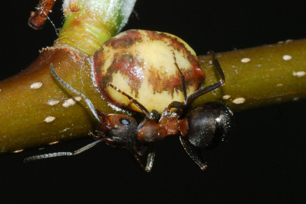 auf Sorbus aria (Echte Mehlbeere) fand ich Schildläuse (sehr wahrscheinlich Eulecanium tiliae), die von Ameisen betrillert, beerntet und beschützt wurden. Ist die Identifikation der Ameise anhand der Bilder möglich?