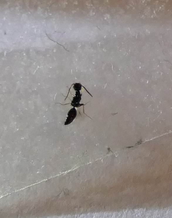 Ich habe schon selbst ein wenig recherchiert, und bin zu der Vermutung gekommen, dass es sich nicht, wie ich erst dachte, um eine Ameise handelt, sondern um eine Plattwespe / Bethylidae. Diese Tiere scheinen ja durchaus auch gelegentlich Menschen zu stechen.