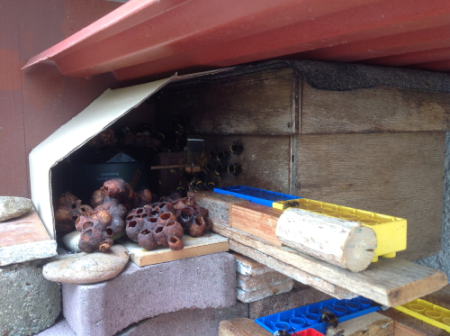 Das Bild, was zu sehen ist wurde am 04.07.2014 aufgenommen worden. Das Nest war im Innenraum des Nistkastens zu groß geworden und musste nach außen expandieren. Das Außennest hatte nicht lange Bestand, weil Kohlmeisen sich an ihm zu schaffen machten. Dennoch kamen bei den Erdhummeln zahlreiche Jungköniginnen zur Welt. Das Erdhummelnest starb Mitte August ab.