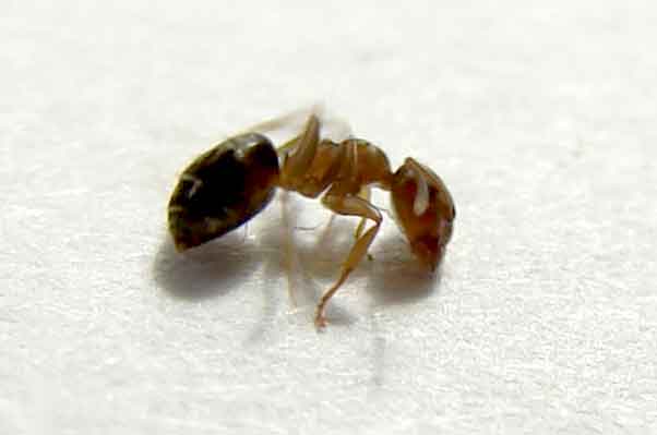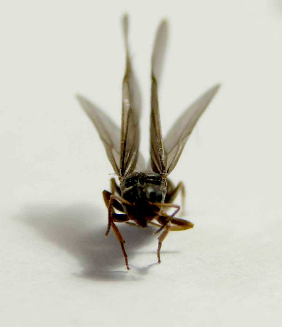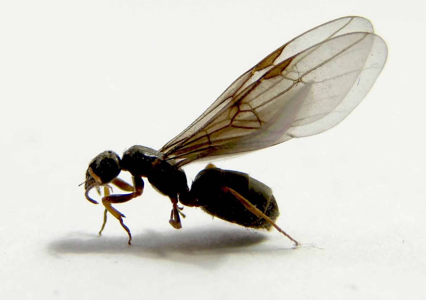 Anbei ein paar Fotos sowohl von den laufenden, als auch von den fliegenden Exemplaren. Die Läufer sind ca. 2,5 - 3 mm, die Flieger ca. 7 mm lang. Ich hoffe sehr, dass mir jemand bei der Artenbestimmung helfen und mir ein paar Tipps zur wirksamen Bekämpfung geben kann, damit nicht noch der gesamte Boden rausgerissen werden muss. Ich finde Ameisen super, aber in diesem Fall leben sie leider am völlig falschen Ort. Besten Dank schonmal!