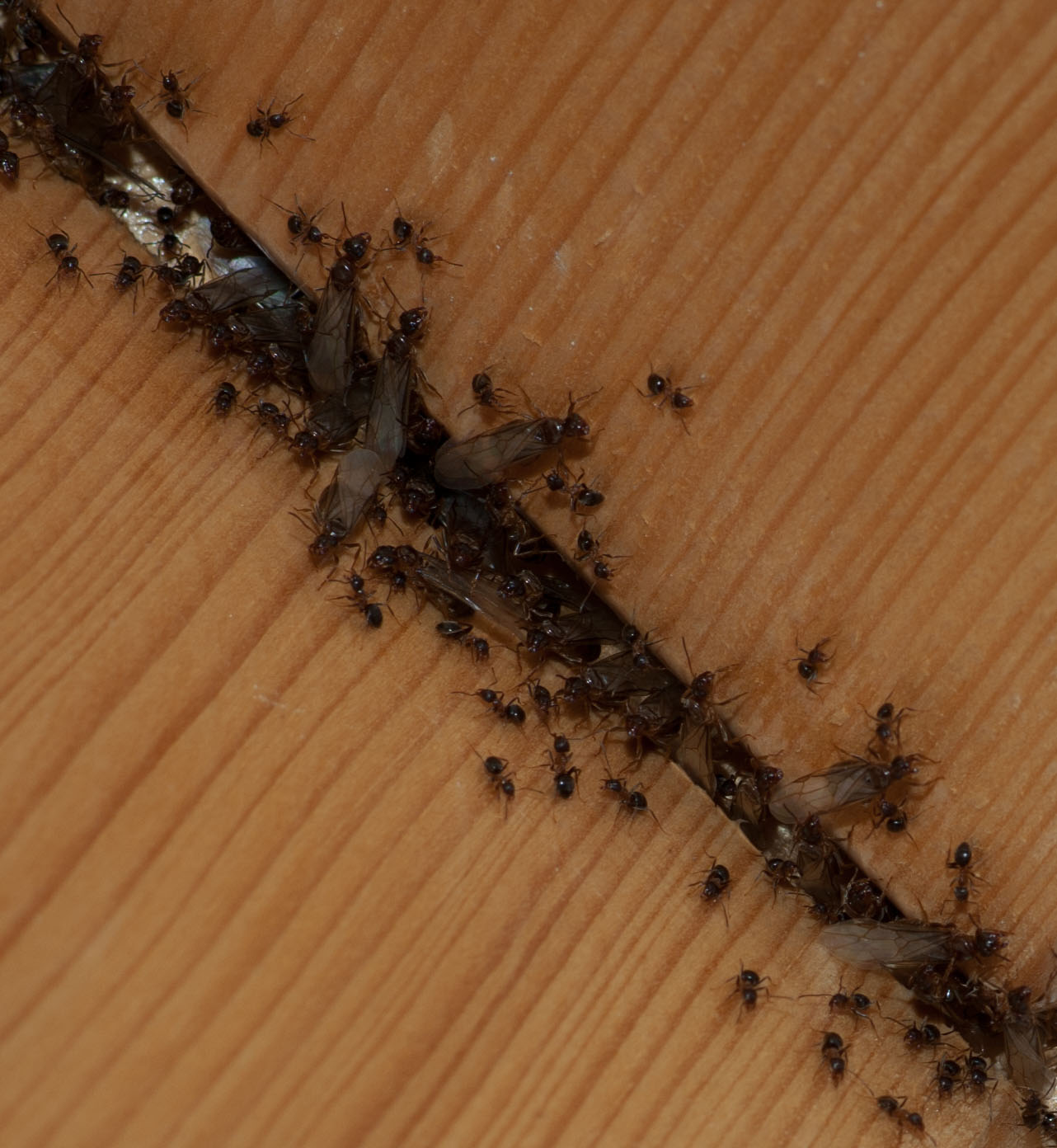 Tagsüber sind keine Ameisen zu sehen, abends schwärmen sie aus. Eine Ameisenstraße ist nicht zu entdecken und die Ameisen sind hauptsächlich auch am Dachspitz zu finden.