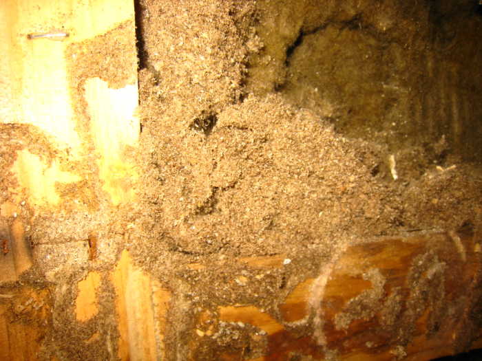 Inzwischen haben wir in die Wand, in der wir ein Nest vermuten, das empfohlene Mittel gesprüht. Ob es gewirkt hat, ist schwer zu sagen. Die Aktivitäten hatten nachgelassen, aber inzwischen wird wieder Abraum heraus geschafft.