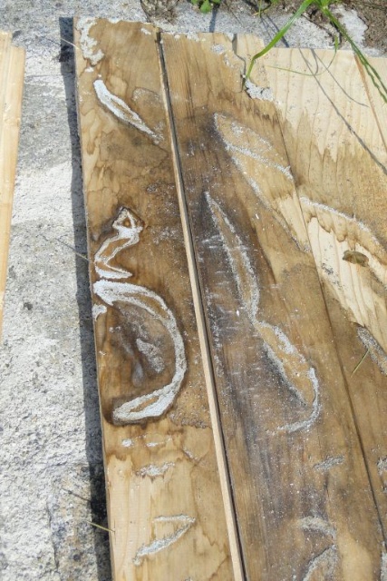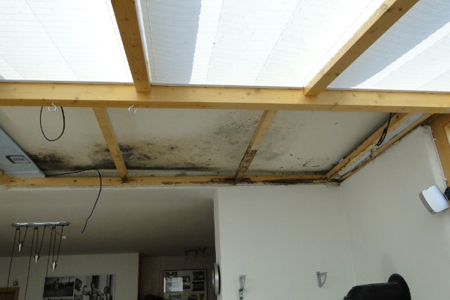 Wir hatten im Sommer 2012 in unserem Wohnzimmer bemerkt, dass irgendetwas von der Decke rieselte. Es kam unter einer Holzverschalung hervor.