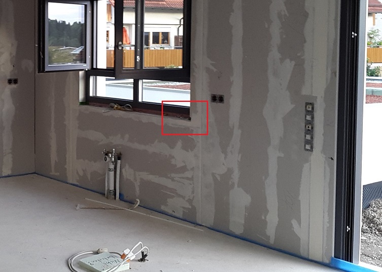 Aktuell ist dieser Punkt nicht mehr zugänglich, da die Küche montiert ist und die Arbeitsplatte die Stelle verdeckt. Die Ameisen müssen zwischen Fensterrahmen und Wand herauskommen.