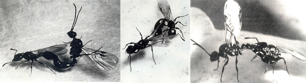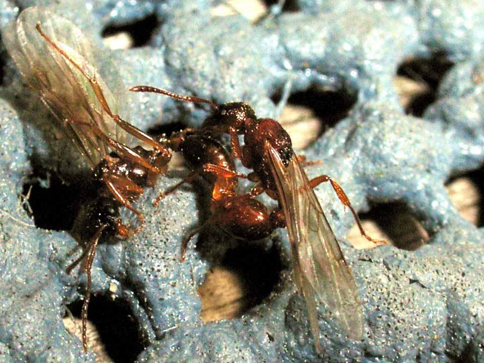 Abb. 1. Myrmica ruginodis. Momentaufnahme vom Kopulationsverhalten, während der es scheint, als würde das ♀ beim ♂ aufreiten.