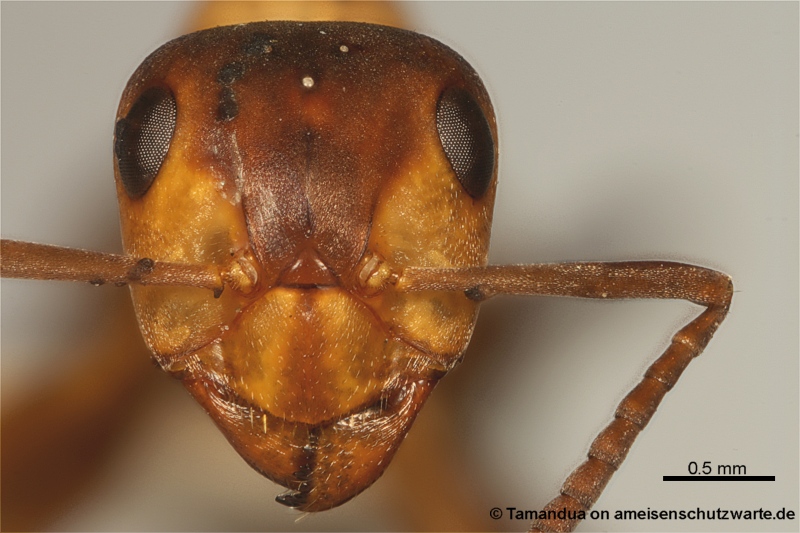 Ich stell´ hier mal ein Foto ein und hoffe, dass es womöglich dazu beiträgt, einen Befall leichter zu erkennen. Man sieht deutlich die dunklen, warzenartigen Wucherungen auf dem rechten Auge des Tieres, zwischen diesem und den Ocellen und auf den Fühlerschäften.