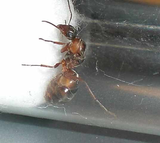 die Flügel ab, allerdings meist später als begattete. Aber da wird es wohl große intra- und interspezifische Variation geben. Man kann die Koloniegründung des Serviformica-Weibchens beschleunigen, indem man ihm einige Puppen oder frisch geschlüpfte Arbeiterinnen der gleichen oder einer nah verwandten Art gibt, in diesem Fall rufibarbis, lusatica oder cunicularia.