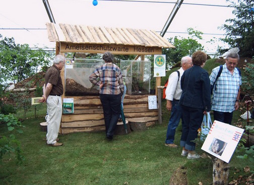 Auch auf dem diesjährigen Hessentag in Butzbach vom 1. bis 10.Juni 2007 lockte das Zelt " Natur auf der Spur " wieder unzählige Besucher an. Die ASW Hessen war mit dem großen Formikarium in dem gestalteten Naturerlebnisraum Wetterau vertreten und die Besucher konnten einen Einblick vom Leben und der Bautätigkeit in einem Waldameisenvolk gewinnen. Allein am Eröffnungstag waren über 800 Schulkinder anwesend und an den folgenden Tagen wurden über 70 Schulklassen neben den übrigen Besuchern von den ASW-Mitgliedern am Stand umfassend unterrichtet. Ein herzliches Dankeschön für Einsatz und Engagement der 10 Tage dauernden Ausstellung an den Kreisvorsitzenden Wetterau, Hans Fleischhauer, der vor Ort von Reinhold Stock aus Nidda und Dieter Bretz aus Weilburg bei Transport, Auf und -Abbau unterstützt wurde. Dank auch an die Standbetreuer Reiner Pfisterer aus Grünberg, Alwin Kröck aus Rodgau, Peter Saldenberger aus Usingen, Klaus Nickel aus Schauenburg, Michael Schön aus Kassel, Ewald Krack aus Bad S.-Salmünster und Klaus Asmus aus Frankfurt.