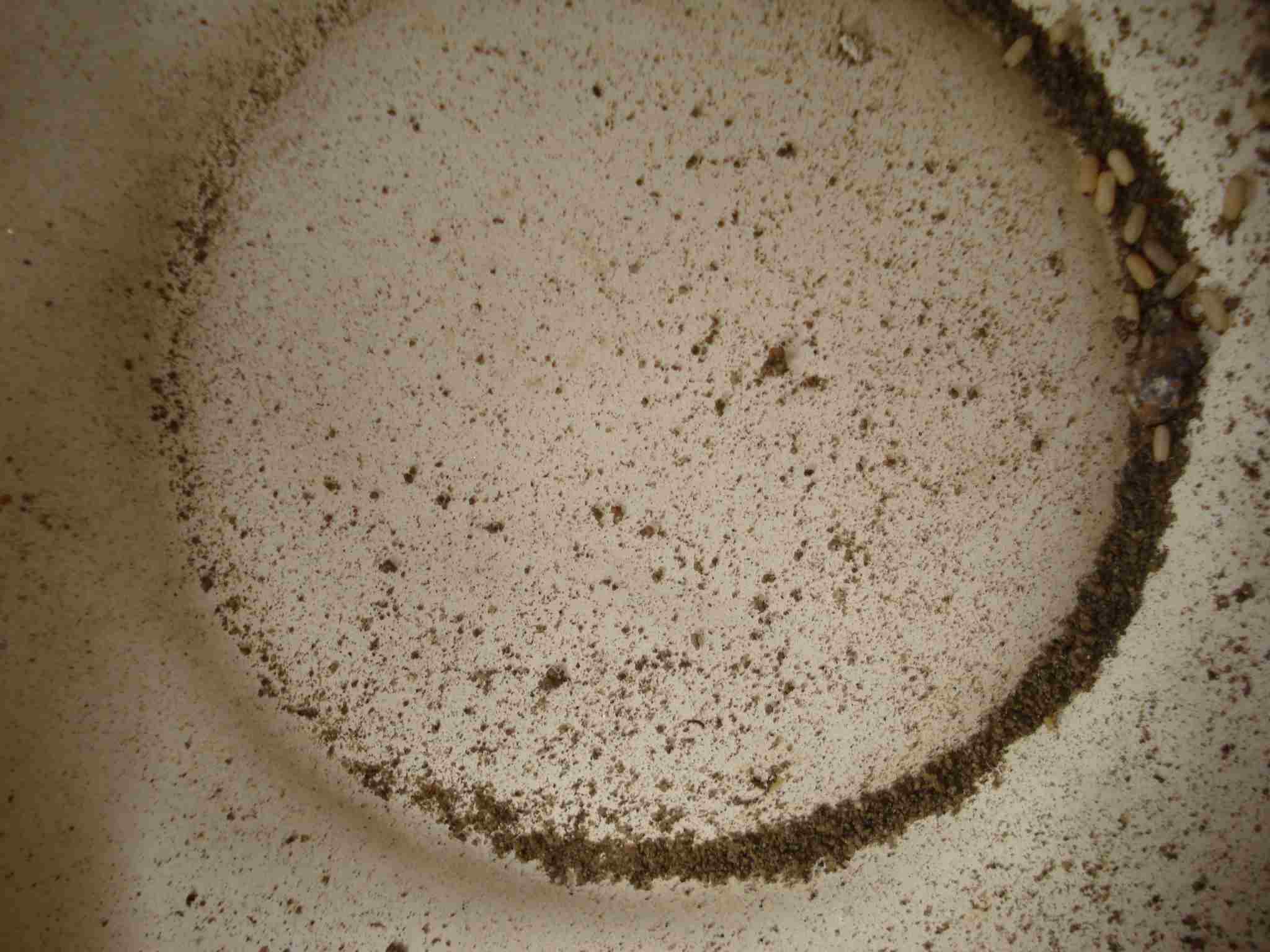 gestern habe ich mich den ganzen Tag mit der Nestsuche beschäftigt. Meine Freundin ist dann im Garten fündig geworden. Vermutlich ist es nur irgendein Nest, dass nichts mit dem im Haus zu tun hat. Allerdings war es wirklich spannend zu beobachten wie die Ameisen versuchen ihre Larven zu schützen. Direkt nach Entdeckung ging es auf Reisen